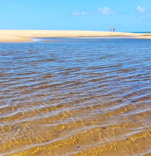 Na praia, há trechos onde o mar é mais calmo, especialmente próximo à foz do rio, ideais para o banho infantil. Essa diversidade de ambientes — entre rio, mar e dunas — permite que cada membro da família aproveite a viagem de forma personalizada, sem abrir mão da segurança e do conforto.